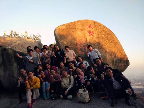 接下来下午的重头戏来了,徒步爬山上云洞岩。据说其中包括一线天,千人洞,风动石。考验大家体力的时候到了,太久没运动的办公室族们表示上气不接下气。所谓会当凌绝顶,一览众山小,大家都很棒坚持登顶,风景自然是美不胜收。看看这美丽的风景是不是让人陶醉!看看大家意气风发的样子,是不是非常羡慕!