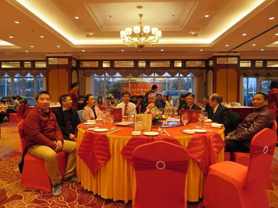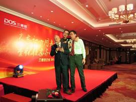 “在这个喜庆的日子里,我们很荣幸邀请到了本次晚会的特别嘉宾,隆重介绍下,他们分别是:精益管理导师吴文祥老师,EPE行业老大哥台湾新记股份有限公司廖董事长、邓特助、大家的老朋友刘先生”。