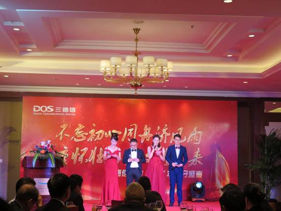 在这辞旧迎新的难忘时刻,我们再次相聚在鹭岛会展中心-17年大放光芒的金砖宝地,举办我们三德信大家庭2017尾牙盛宴,首先给大家拜个早年,祝大家身体健康,合家幸福,工作顺利,万事如意。四位主持人热闹开场。
